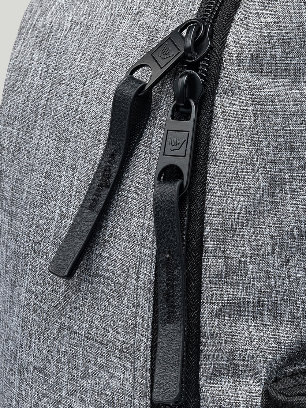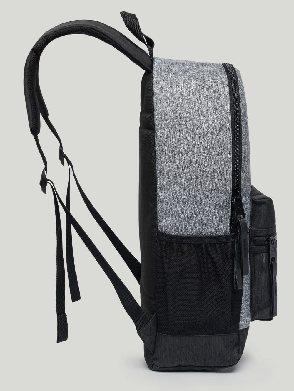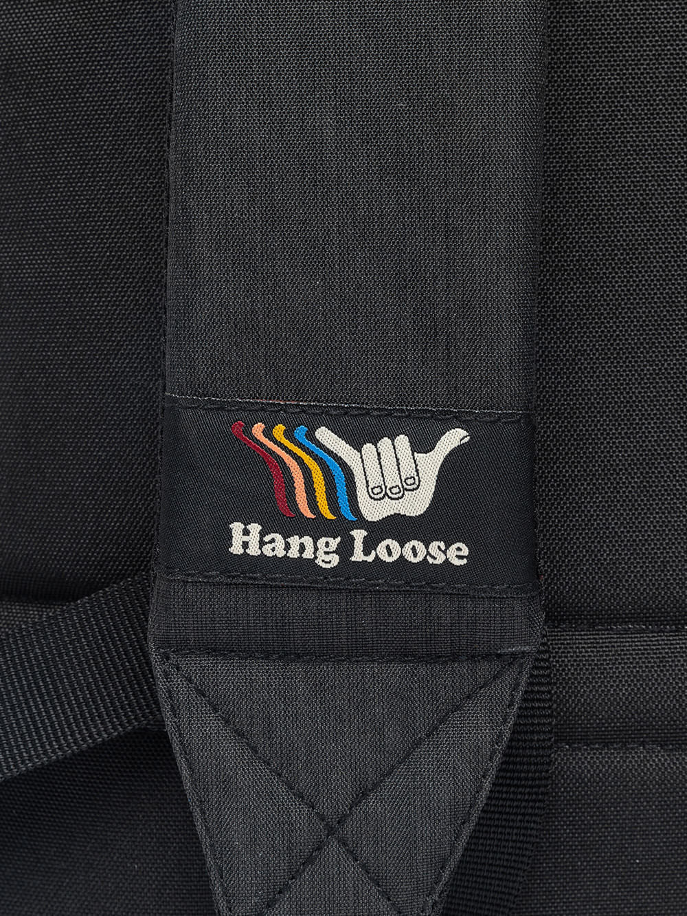 A mochila Hang Loose Line Cinza é reforçada, confeccionada em algodão. Conta com zípers personalizados, compartilhamento para notebook até 16 polegadas, estampa Hang Loose frontal, aplicação de etiquetas e múltiplos bolsos. Possui 45 cm de altura, 31 cm de largura e 15 cm de profundidade, com capacidade de 21 litros.