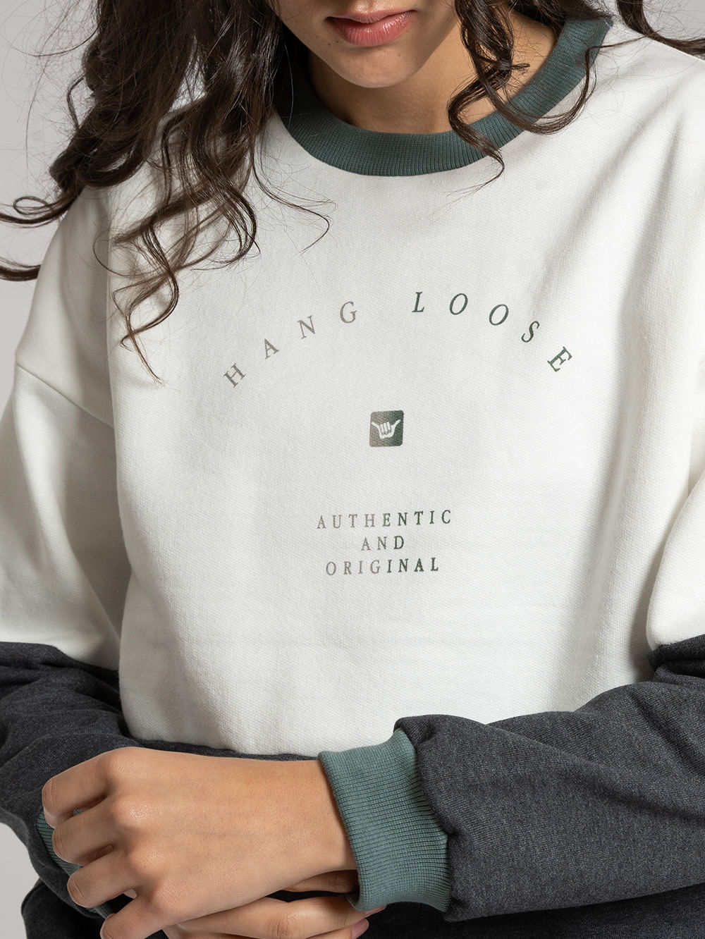Moletom Careca Hang Loose Classic, possui recortes especiais e estampa frontal. Confeccionado em tecido algodão e poliéster.