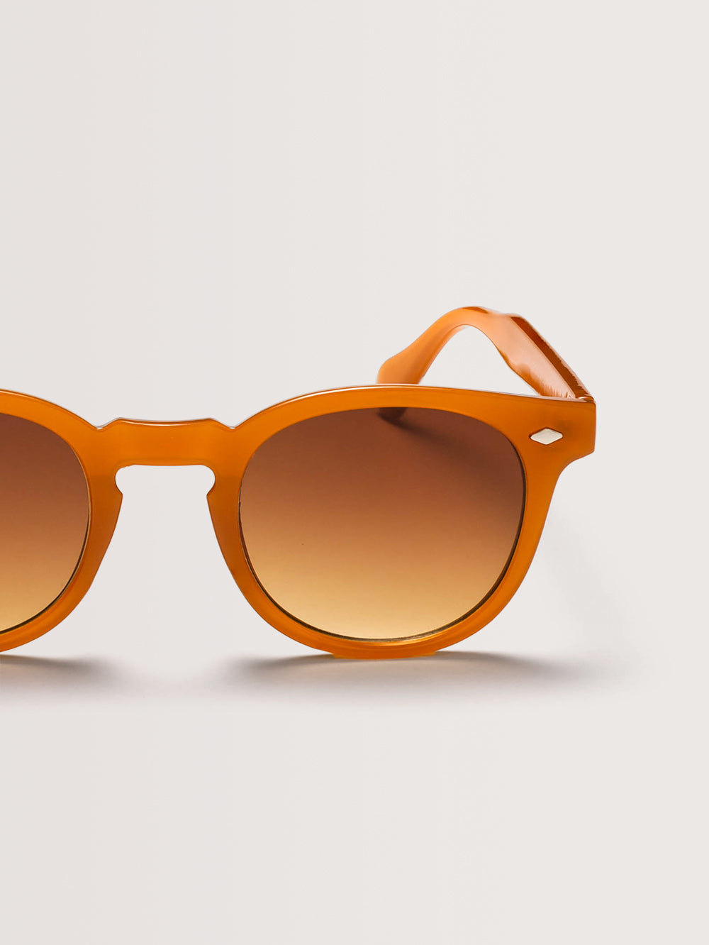 Óculos Hang Loose Destiny é composto por acetato. O óculos possui armação leve e flexível em cor laranja e lentes polarizadas na cor fumê degradê.