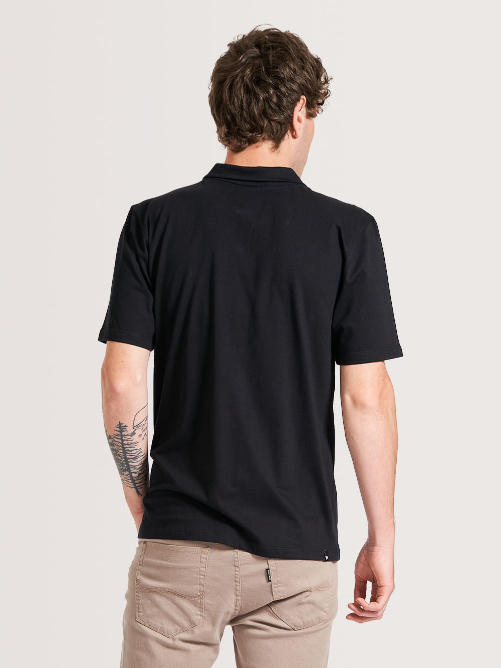 Polo Hang Loose Basic, possui abertura de peitilho com fechamento em 2 botões personalizados, aplicação de etiqueta no peito e etiqueta Hang Loose aplicada na barra.