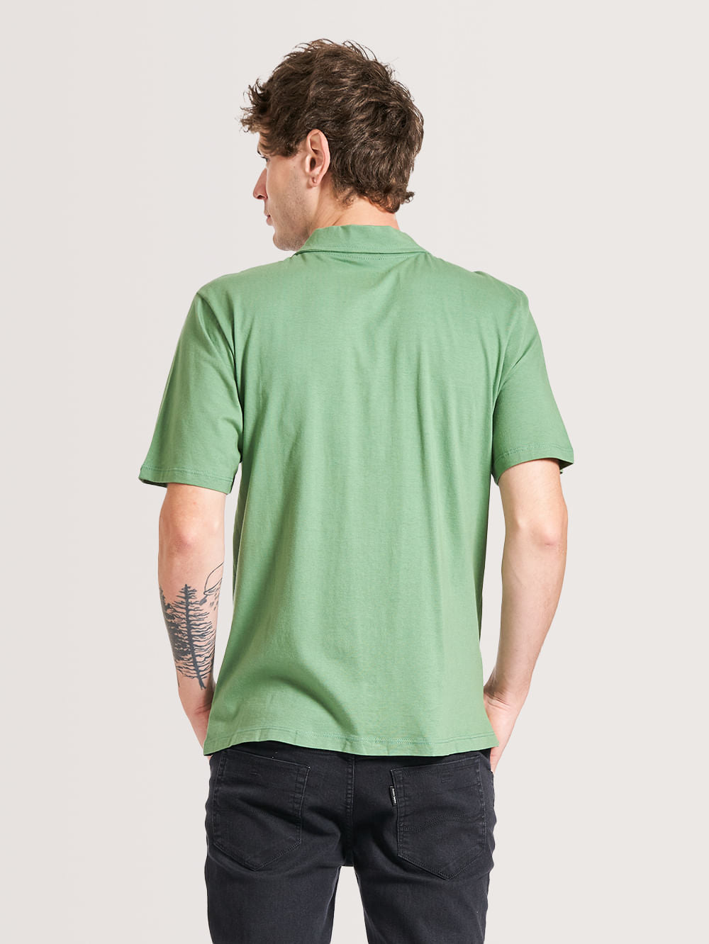 Polo Hang Loose Basic, possui abertura de peitilho com fechamento em 2 botões personalizados, aplicação de etiqueta no peito e etiqueta Hang Loose aplicada na barra.