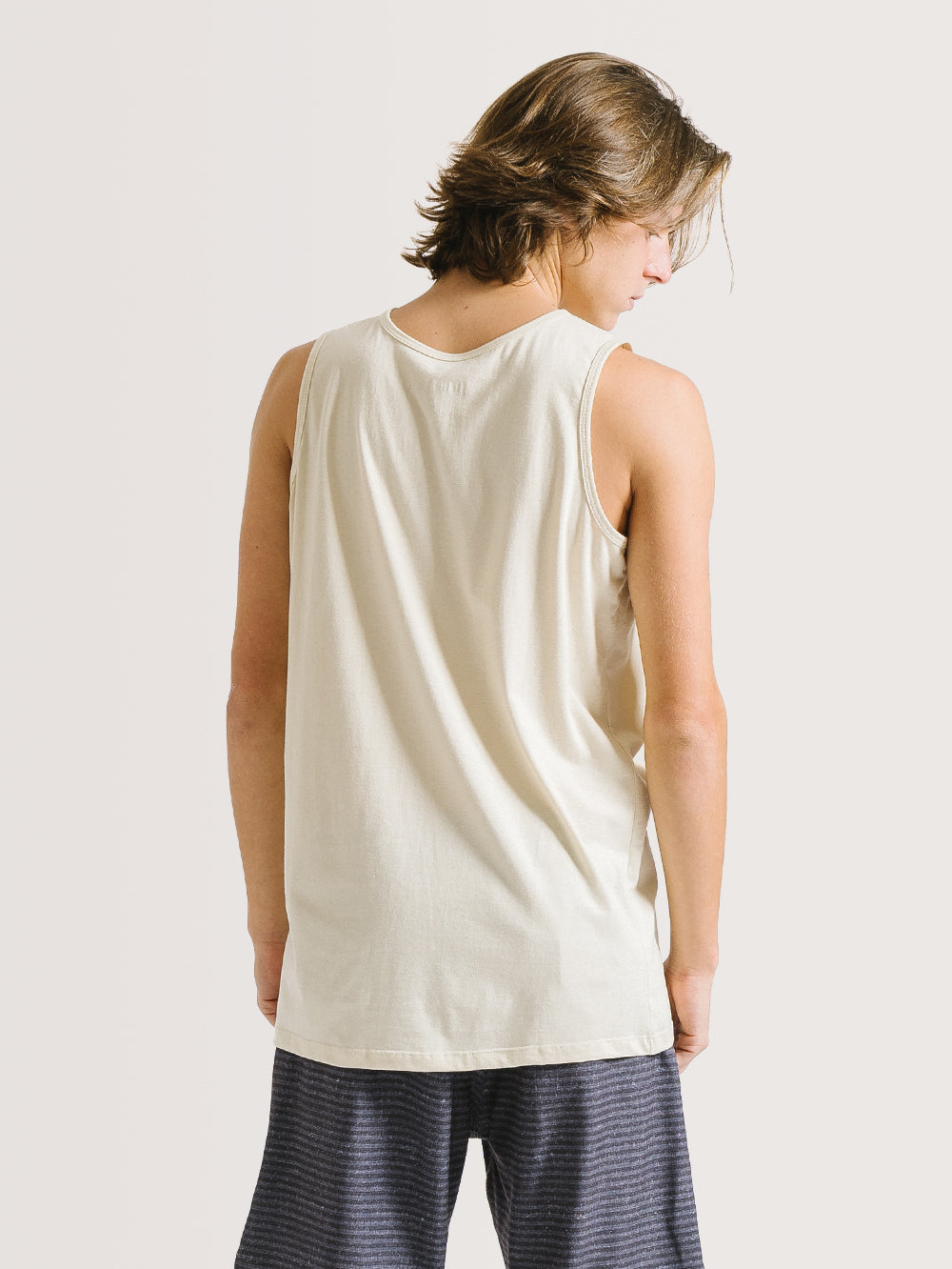 Regata Hang Loose Dublog, possui estampa em silk frontal e etiqueta Hang Loose na lateral. Confeccionada em tecido meia malha 30/1.