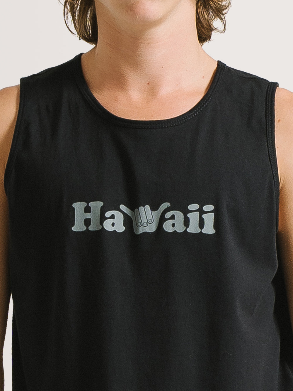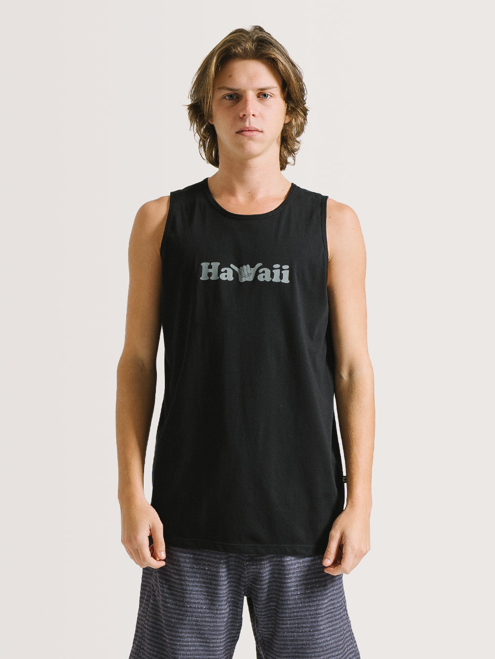 Regata Hang Loose Hawaii, possui estampa em silk frontal e na nuca e etiqueta Hang Loose na lateral. Confeccionada em tecido meia malha 30/1.