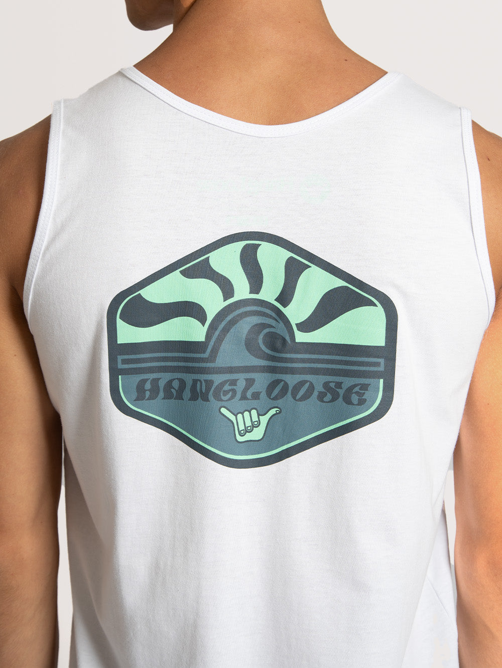 Regata Hang Loose Rise: desfrute do frescor do algodão nesta regata. A estampa Hang Loose na frente e nas costas proporciona um visual descontraído e versátil. O detalhe autêntico da etiqueta Hang Loose na barra assegura a originalidade. Uma peça leve e essencial para os dias quentes.