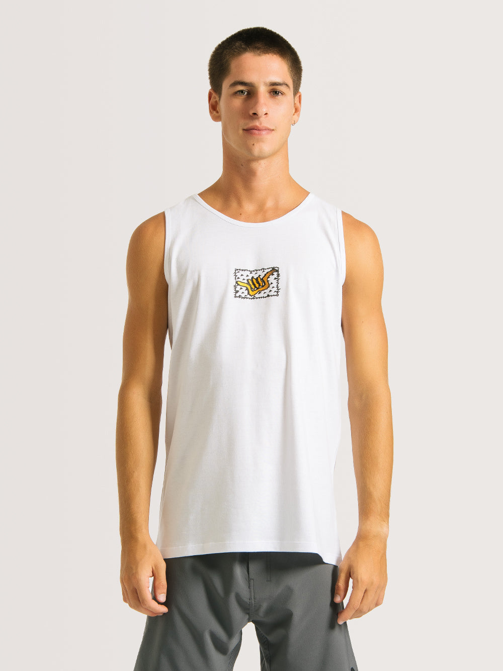 Regata Wildguys: Desfrute do frescor do algodão nesta regata. A estampa logomarca descontraída em Estampa frontal e costas em 3 cores proporciona um visual básico e cheio de estilo. Detalhe autêntico da etiqueta Hang Loose assegura a originalidade. Uma peça leve e confortável para os dias quentes.