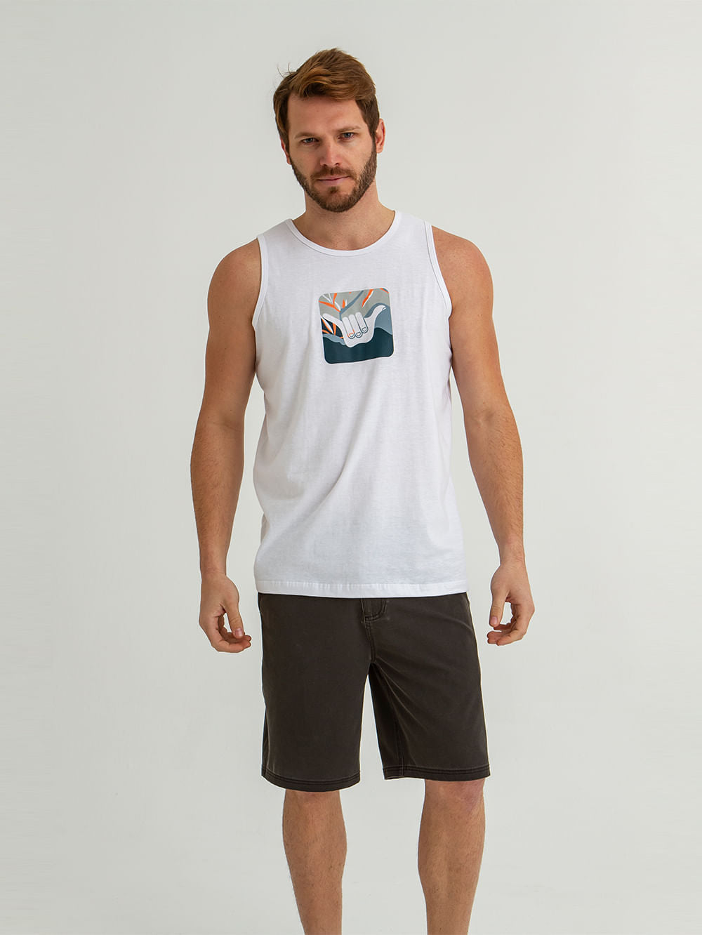 Regata Hang Loose Eco Logo Branca. Confeccionada em meia malha de algodão, a regata Eco Logo possui silk frontal e etiqueta Hang Loose.