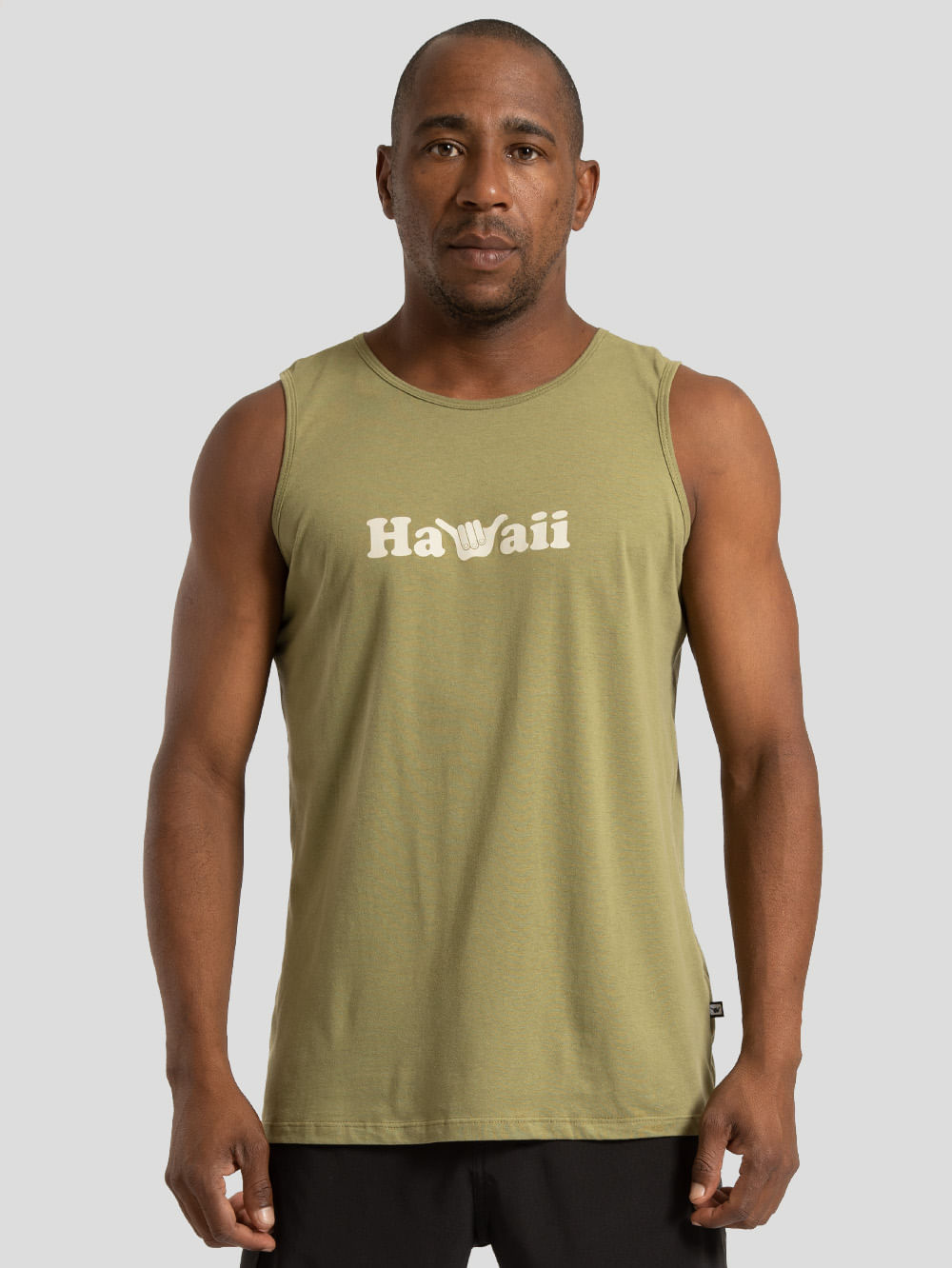 A Regata Hang Loose Hawaii é feita em ½ malha 30/1, possui silk frontal de cor única e etiqueta Hang Loose.