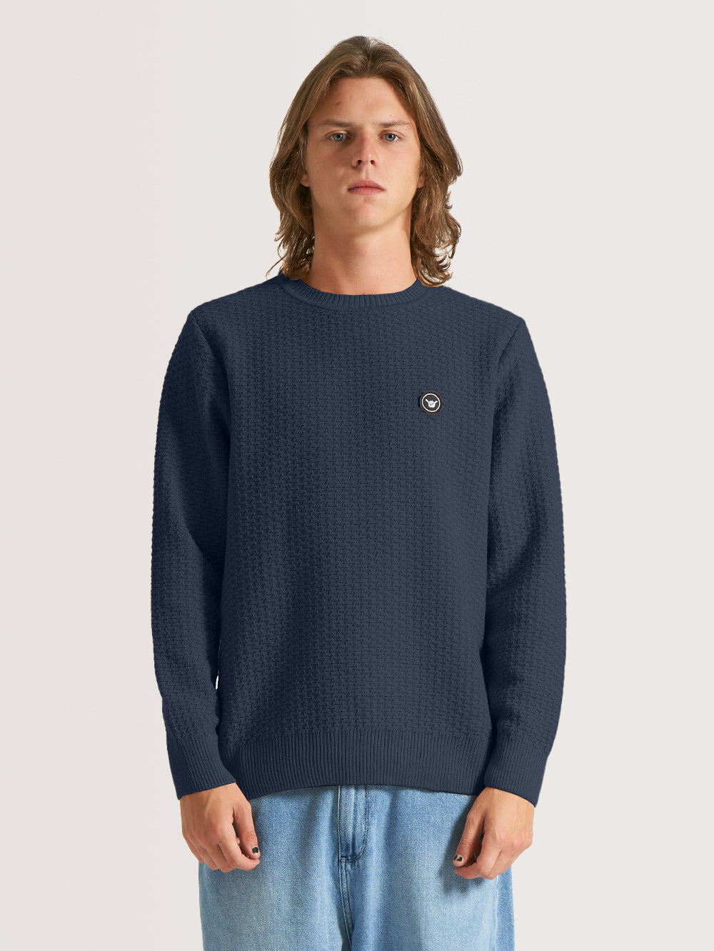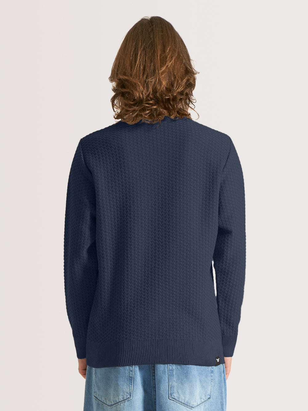 Tricot Hang Loose Doors: Confeccionado em tricot jacquard, ele se destaca pela textura e padrões únicos. A aplicação da etiqueta com a logomarca no peito adiciona um toque autêntico. Este suéter de tricot é essencial para os seus dias de inverno, mantendo você aquecido e elegante.